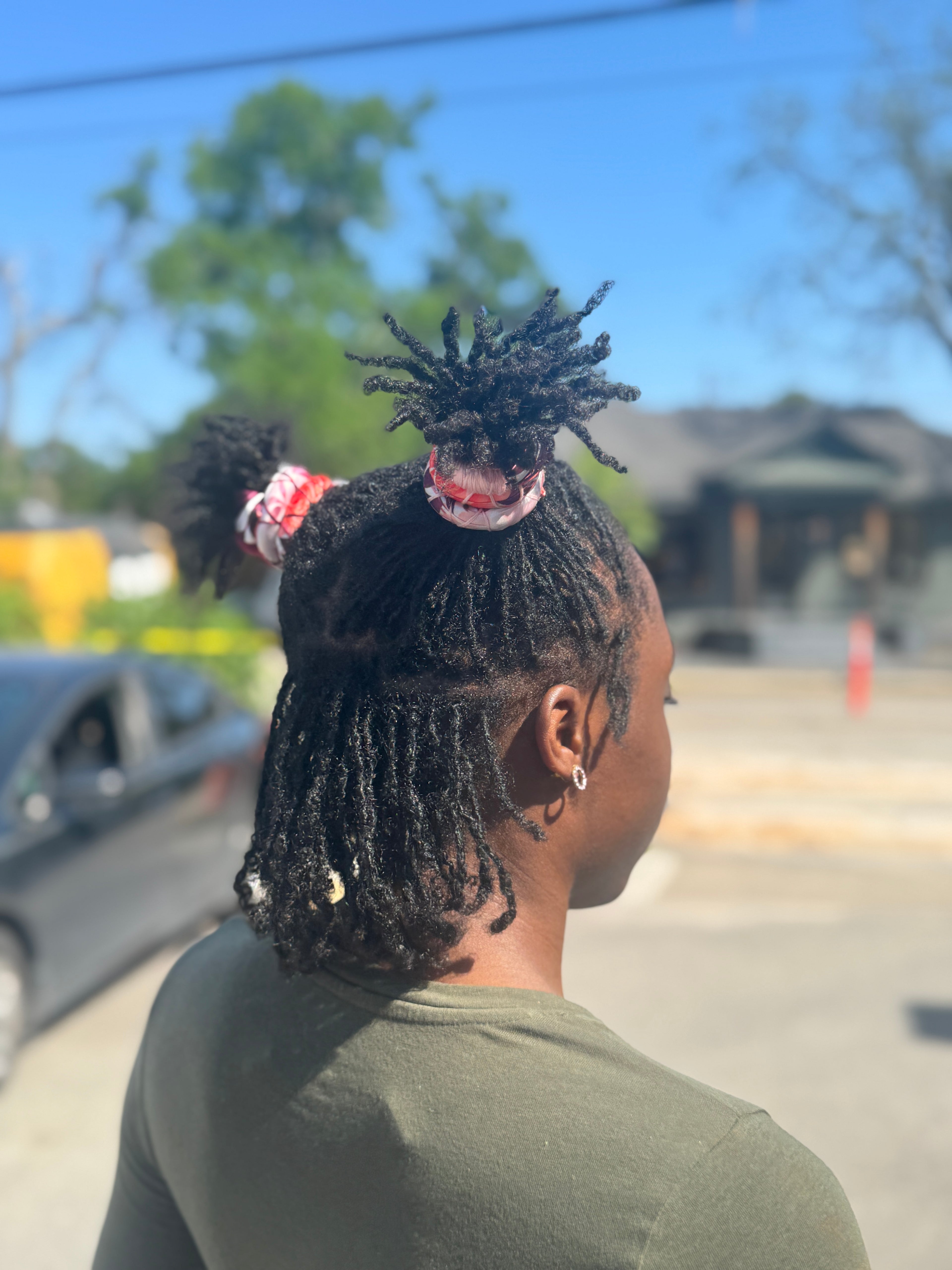 This spiral tie truly gives tension free styles, especially if you have thicker locs! I got the Regal Spiral Tie and the quality is amazing. You can do plenty of styles without giving yourself a headache.
