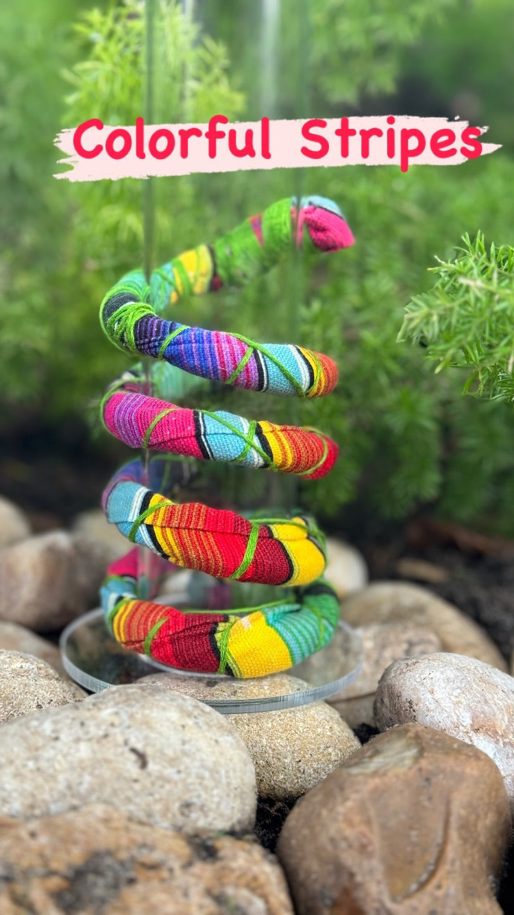 Each spiral tie is unique, handcrafted just for you. Due to their handcrafted nature, wrapping techniques will differ, making each spiral tie one of a kind. Embrace the surprise of varied thread colors that always match the fabric hue.